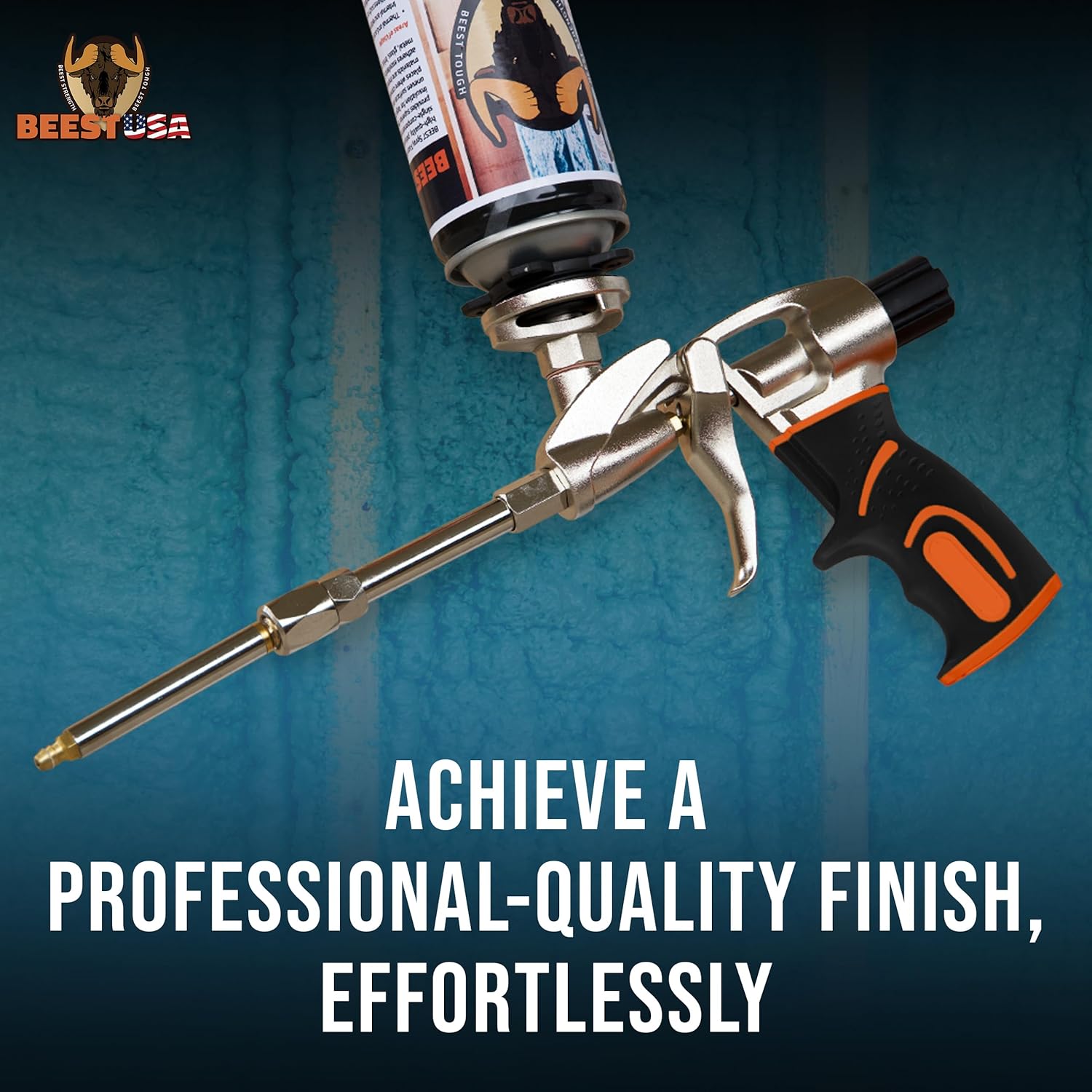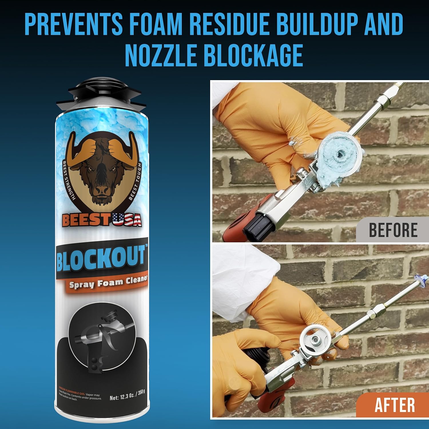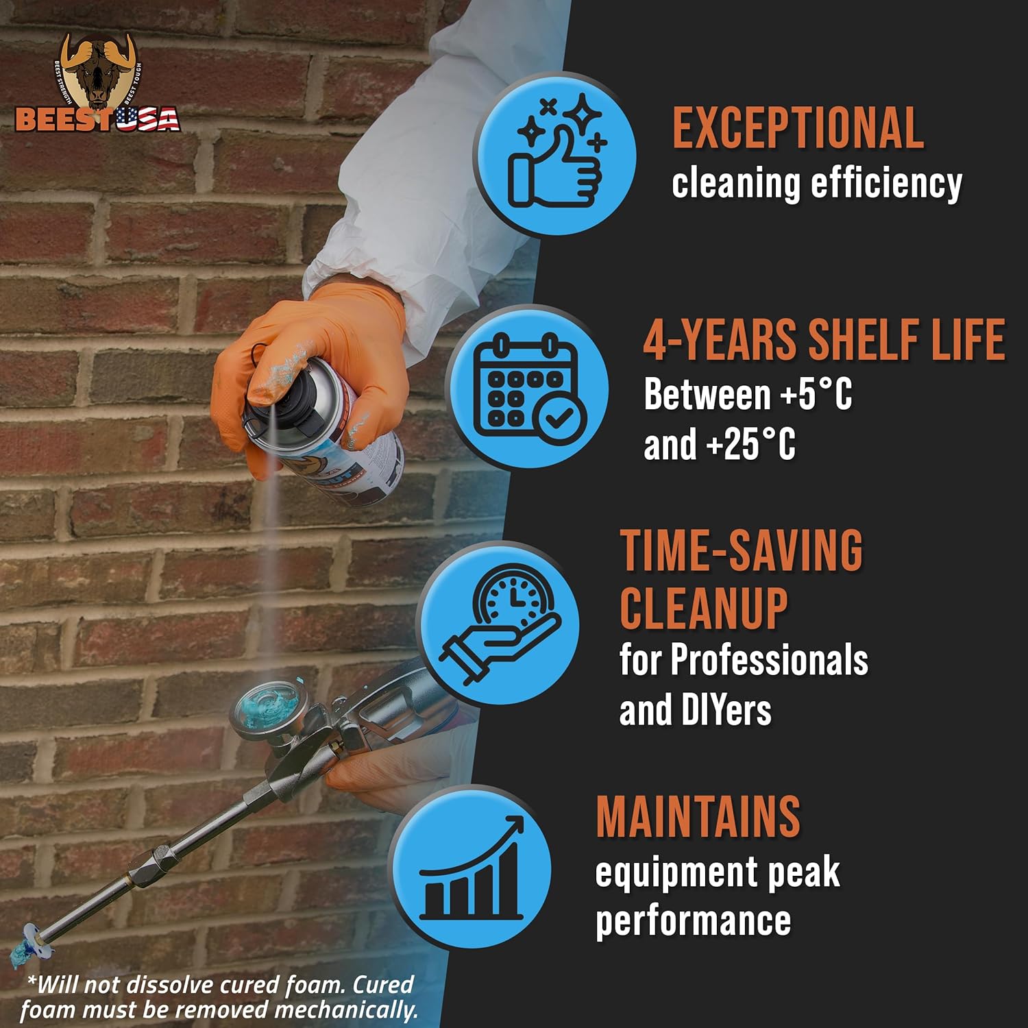 BEEST Polyurethane Spray Foam Cleaner is a must-have tool for professionals and DIY enthusiasts working with polyurethane foam, offering exceptional cleaning power and ease of use. This spray foam gun cleaner ensures tools and surfaces remain in top condition, extending their lifespan, and saving time, effort, and money. The foam spray cleaner is formulated to dissolve uncured polyurethane foam quickly and effectively. Its powerful solvent-based formula restores foam guns, applicators, and non-porous surfaces to their original state without hassle. Can it clean the dried foam from guns? It cannot clean dried or cured foam and immediate application is recommended for optimal results. Is it compatible with all foam guns? Yes, the foam gun cleaner can is compatible with any spray foam gun but it’s always a good idea to check for compatibility to avoid potential damage to seals or components. Can PU foam cleaners be used on multiple surfaces? Safe for use on non-porous surfaces exposed to uncured foam including metal, glass, and plastic, the spray gun cleaner removes foam residue without causing damage. However, the PU foam cleaner cannot be used on sensitive surfaces or for cleaning dried or cured foam. Does its formula leave any residue after cleaning? The spray foam insulation dissolver’s fast-drying formula evaporates quickly, leaving no sticky residue. Does its spray nozzle allow precise application? Yes, the clog-resistant nozzle provides targeted and efficient cleaning, even in hard-to-reach areas. Its design includes options for direct spray and attachment to foam guns, making it a versatile addition to any toolkit. Formulated with a safe propellant, the insulating foam remover is safe to use. Are there any safety precautions needed when using it? For safety, wear protective gloves during use, and avoid direct contact with skin or eyes. Protect it from sunlight and store it in a safe, cool location. Also, detailed instructions are included to guide you through safe usage.