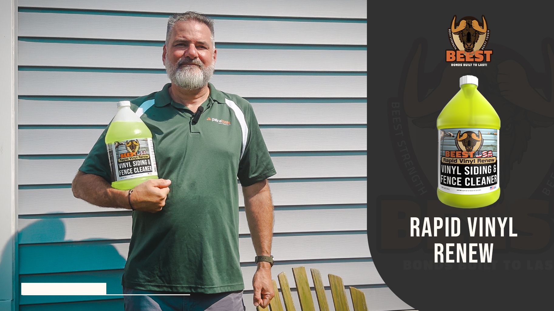 BEEST Rapid Vinyl Renew is a powerful cleaner that effortlessly removes green algae, dirt, grime, and airborne buildup, restoring your vinyl surfaces to their original shine
